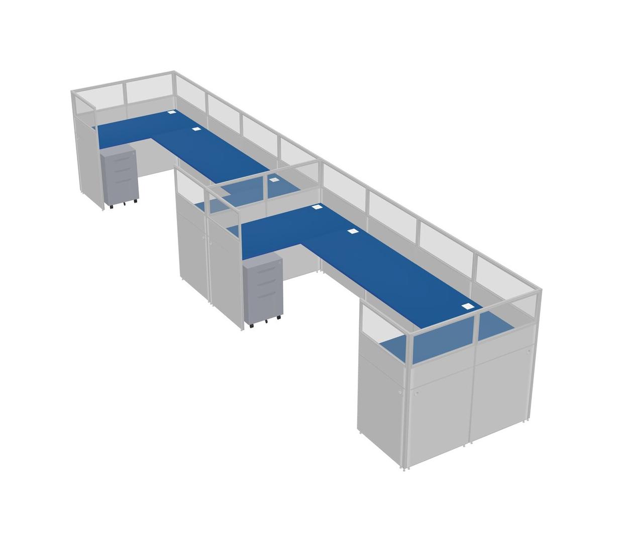 Prism Blue U-shaped Panel System For 2 Person + Metal Mobile Drawers For 2 User(s)