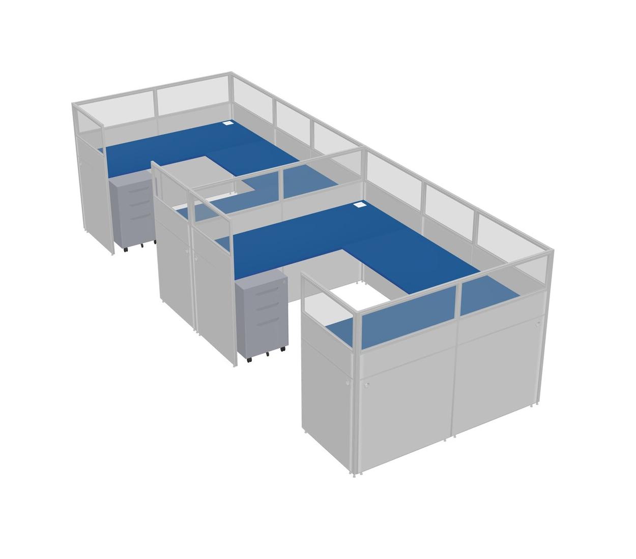 Prism Blue U-shaped Panel System For 2 Person + Metal Mobile Drawers For 2 User(s)