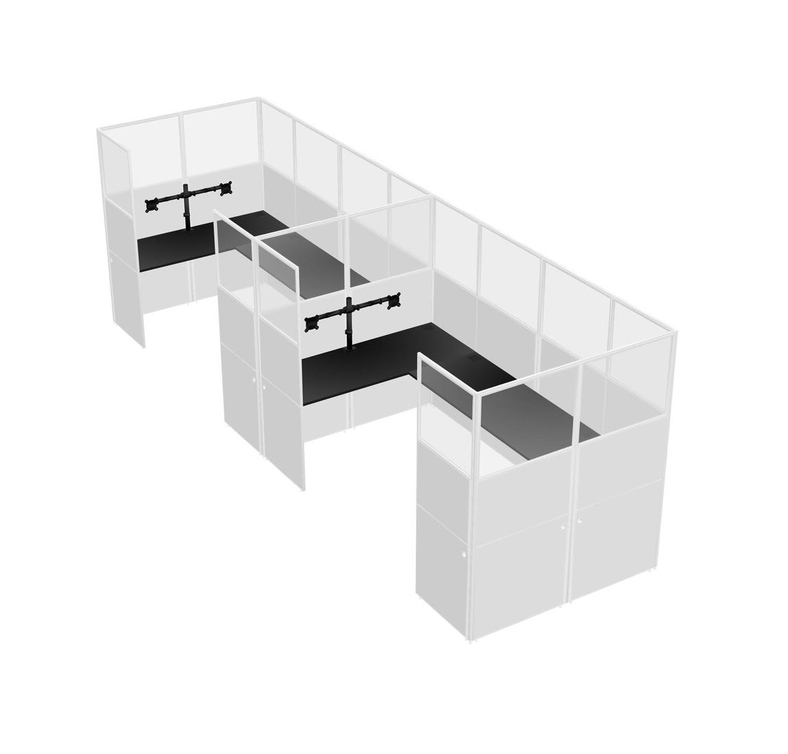 Black U-shaped Panel System For 2 Person + Monitor Arm (double Arms) For 2 User(s)
