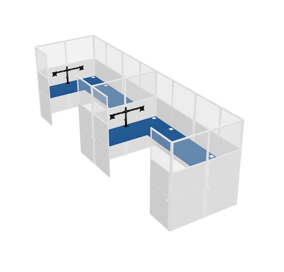 Prism Blue U-shaped Panel System For 2 Person + Monitor Arm (double Arms) For 2 User(s)