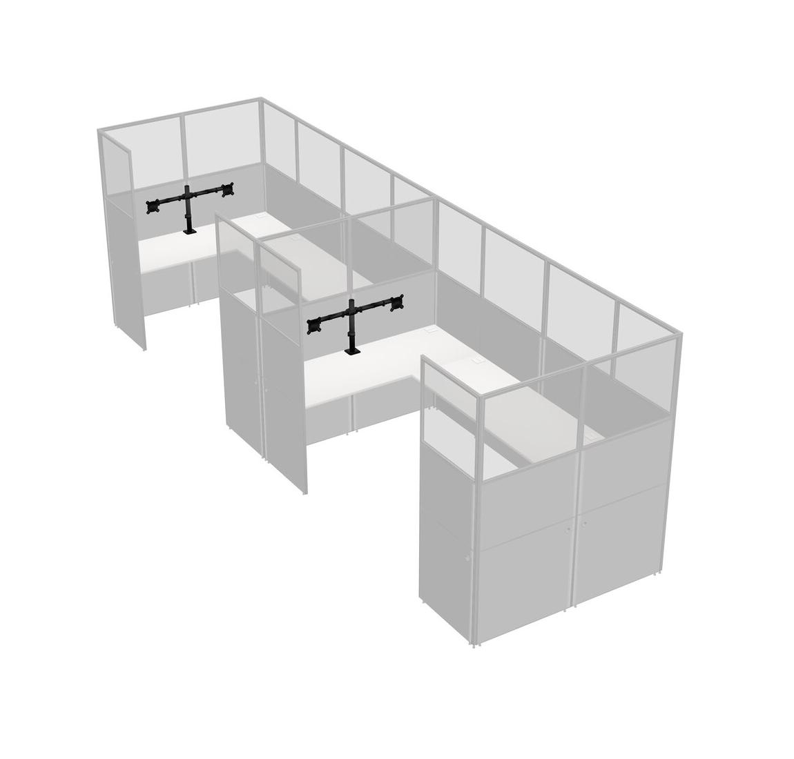 White U-shaped Panel System For 2 Person + Monitor Arm (double Arms) For 2 User(s)