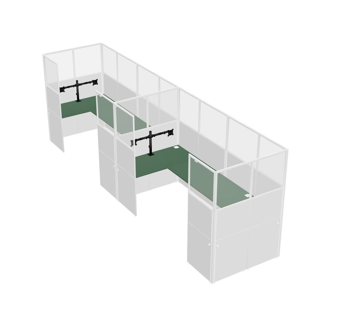 Green U-shaped Panel System For 2 Person + Monitor Arm (double Arms) For 2 User(s)