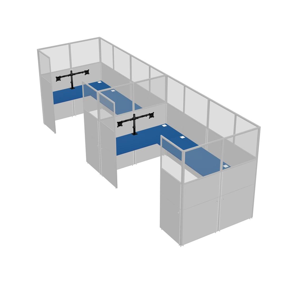 Prism Blue U-shaped Panel System For 2 Person + Monitor Arm (double Arms) For 2 User(s)
