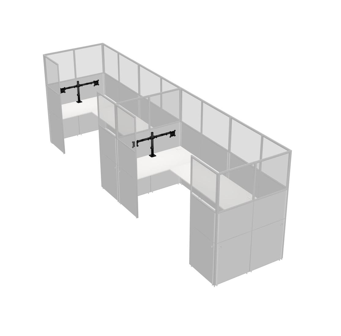 White U-shaped Panel System For 2 Person + Monitor Arm (double Arms) For 2 User(s)