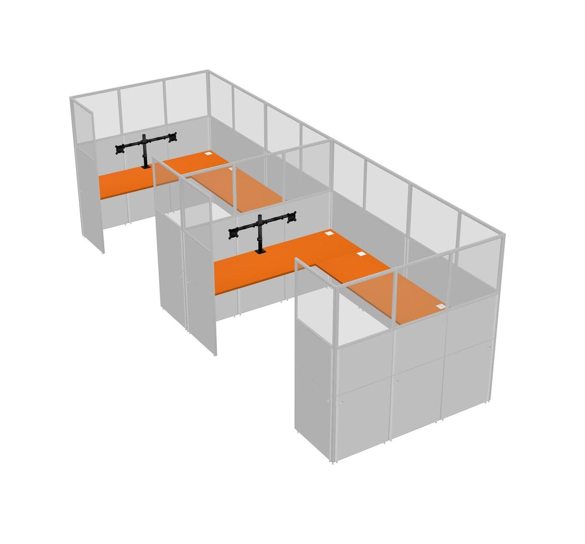 Orange U-shaped Panel System For 2 Person + Monitor Arm (double Arms) For 2 User(s)