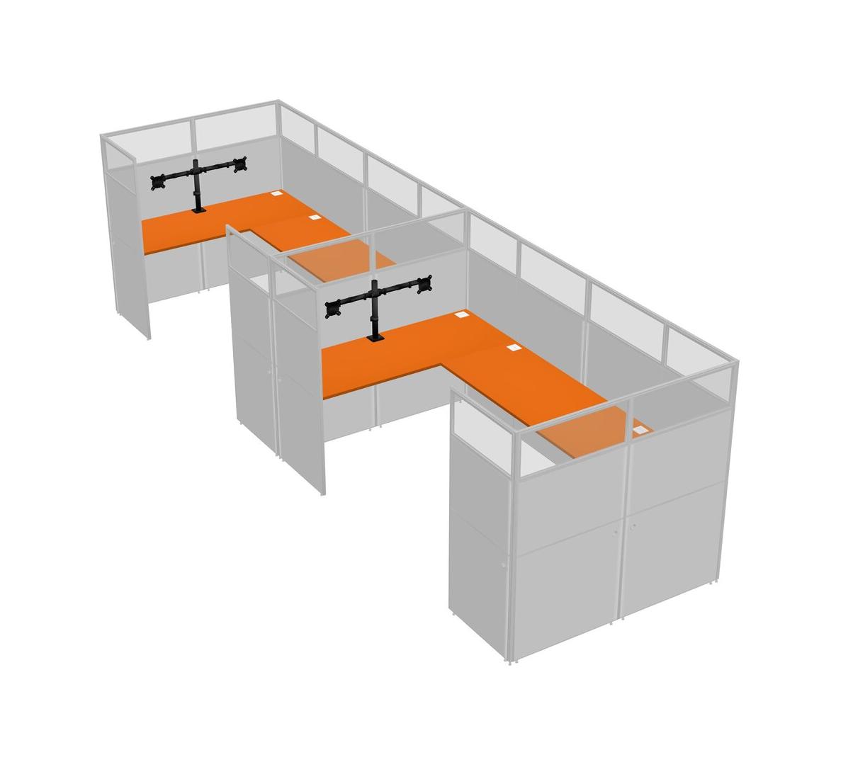 Orange U-shaped Panel System For 2 Person + Monitor Arm (double Arms) For 2 User(s)