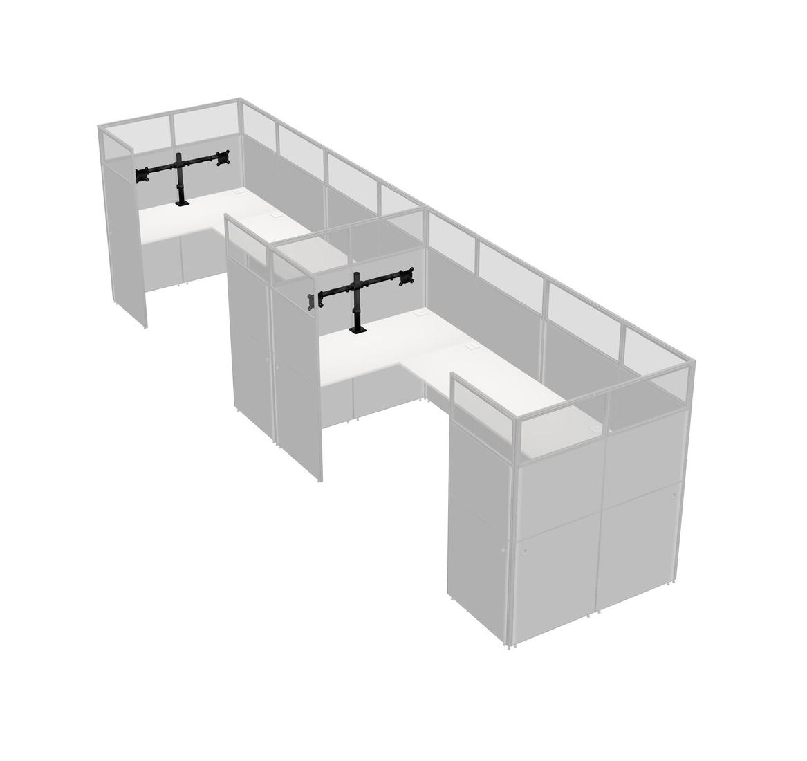White U-shaped Panel System For 2 Person + Monitor Arm (double Arms) For 2 User(s)
