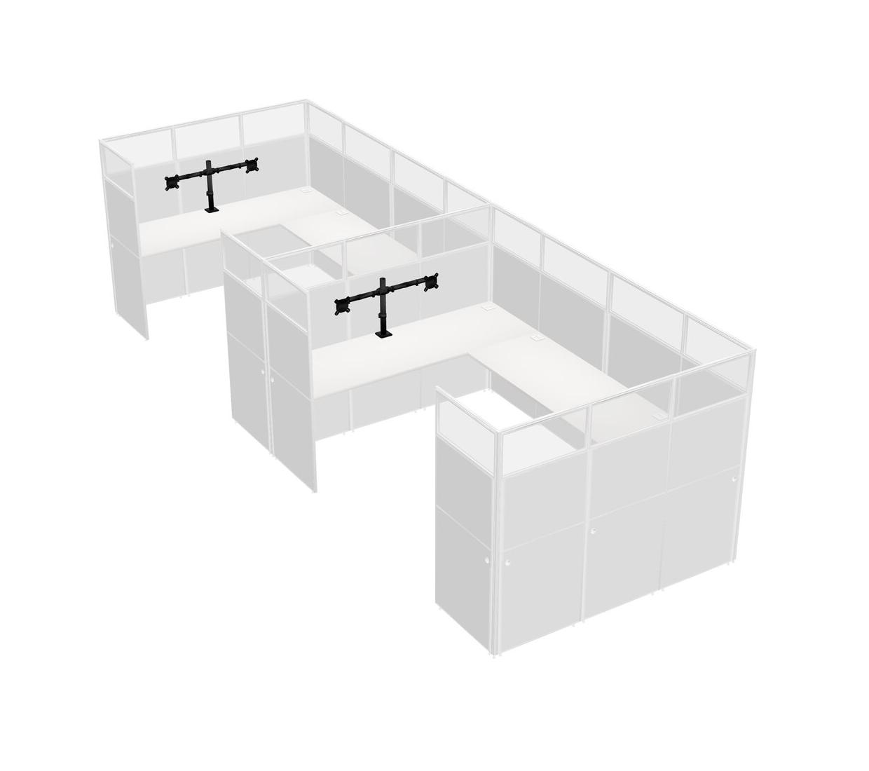 White U-shaped Panel System For 2 Person + Monitor Arm (double Arms) For 2 User(s)