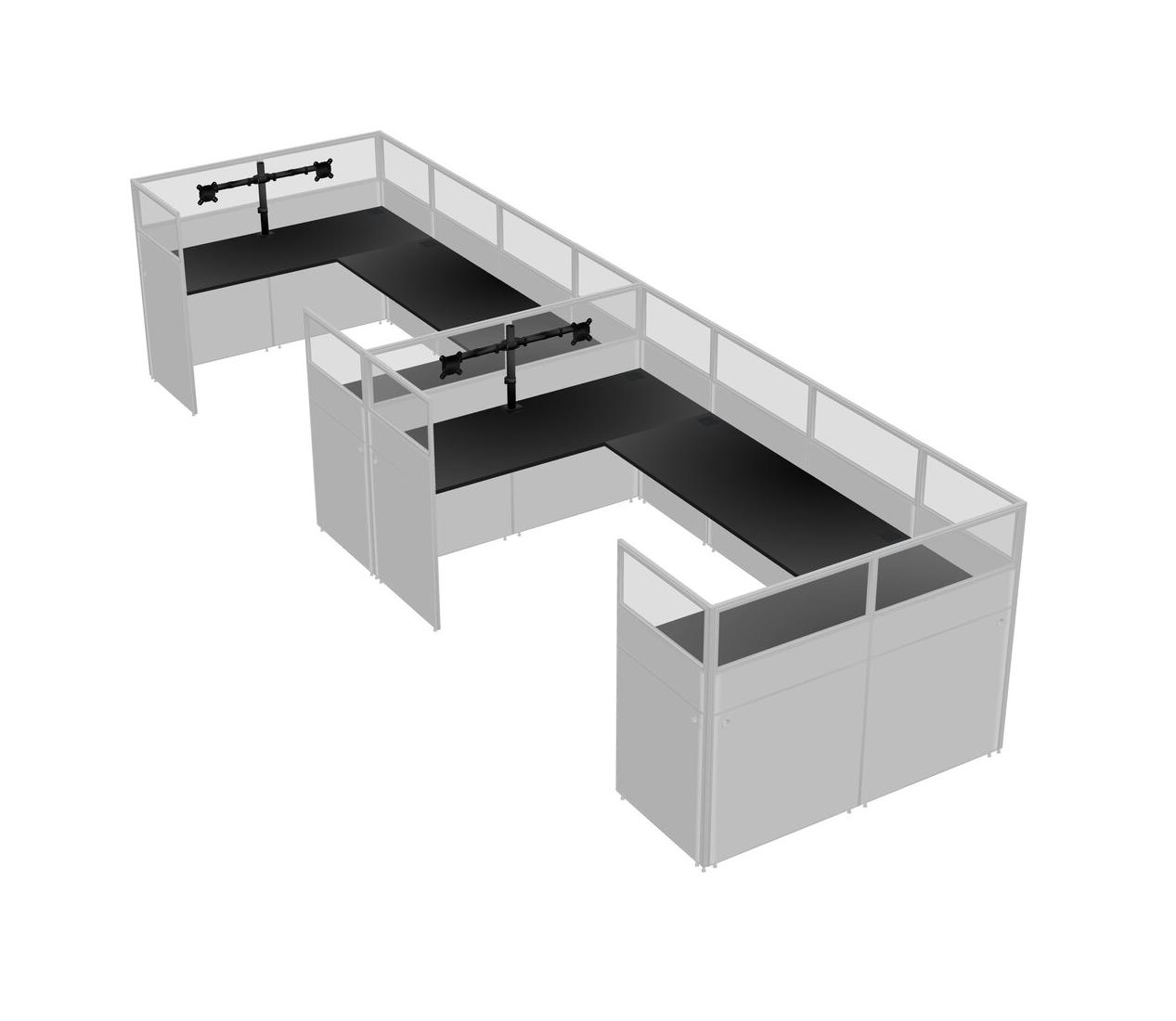 Black U-shaped Panel System For 2 Person + Monitor Arm (double Arms) For 2 User(s)