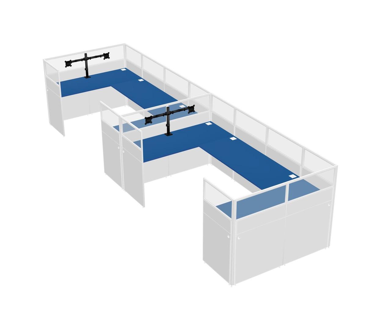 Prism Blue U-shaped Panel System For 2 Person + Monitor Arm (double Arms) For 2 User(s)