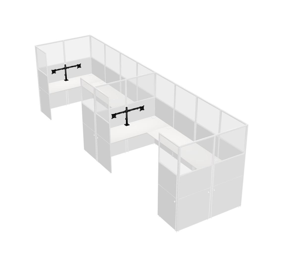 White U-shaped Panel System For 2 Person + Monitor Arm (double Arms) For 2 User(s)