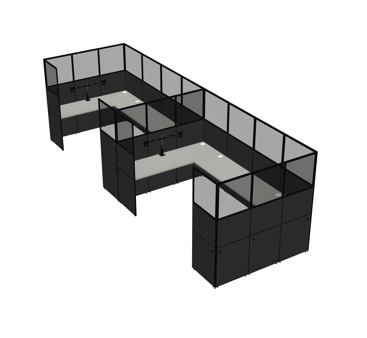 Grey Shadows U-shaped Panel System For 2 Person + Monitor Arm (double Arms) For 2 User(s)