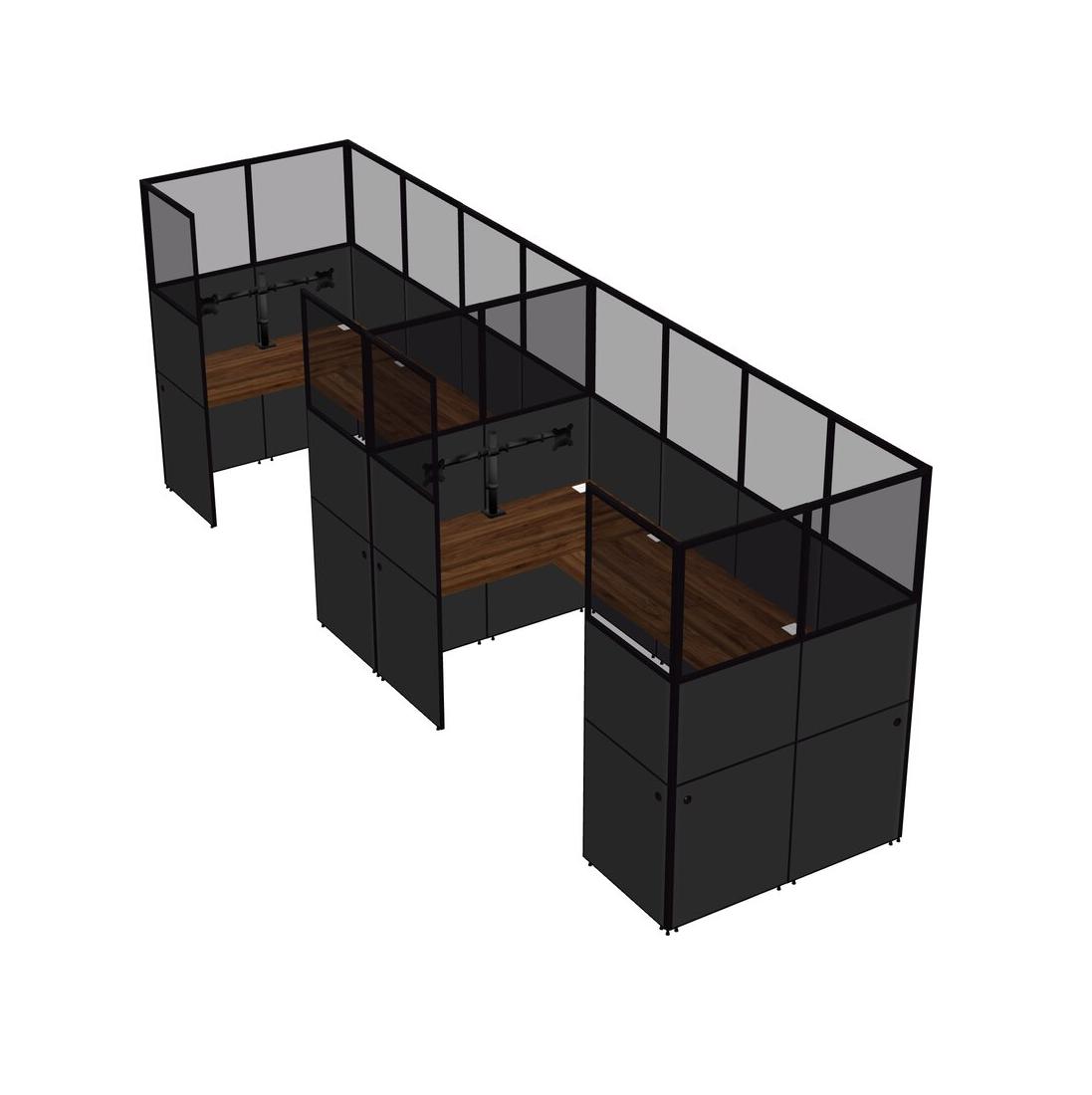 Columbia Walnut U-shaped Panel System For 2 Person + Monitor Arm (double Arms) For 2 User(s)