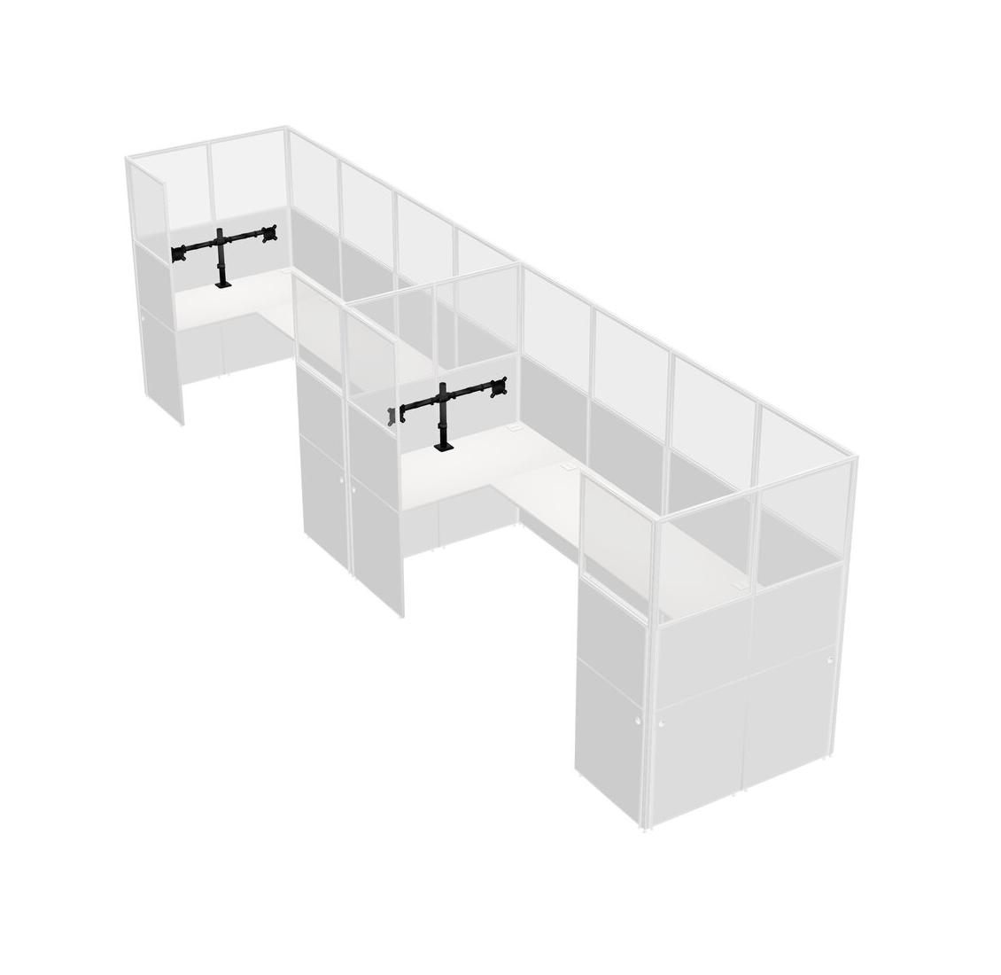 White U-shaped Panel System For 2 Person + Monitor Arm (double Arms) For 2 User(s)