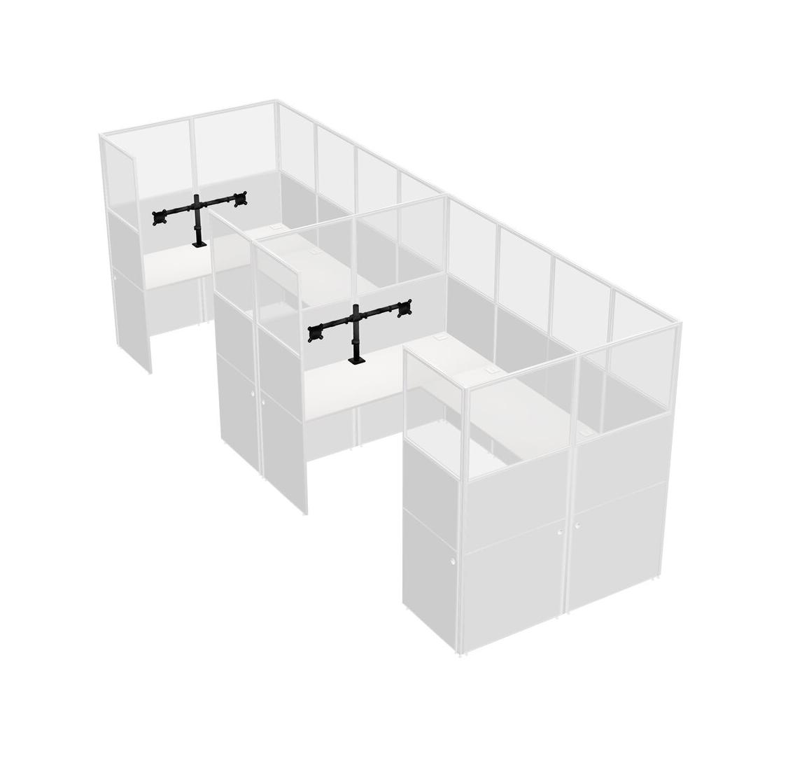 White U-shaped Panel System For 2 Person + Monitor Arm (double Arms) For 2 User(s)