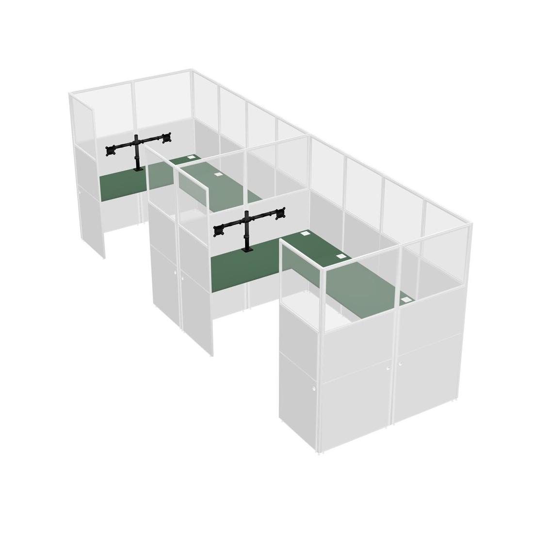 Green U-shaped Panel System For 2 Person + Monitor Arm (double Arms) For 2 User(s)