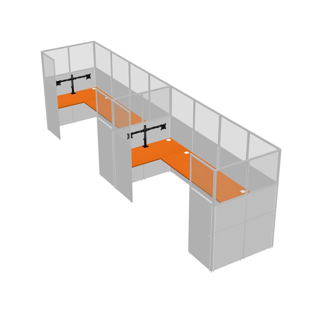 Orange U-shaped Panel System For 2 Person + Monitor Arm (double Arms) For 2 User(s)