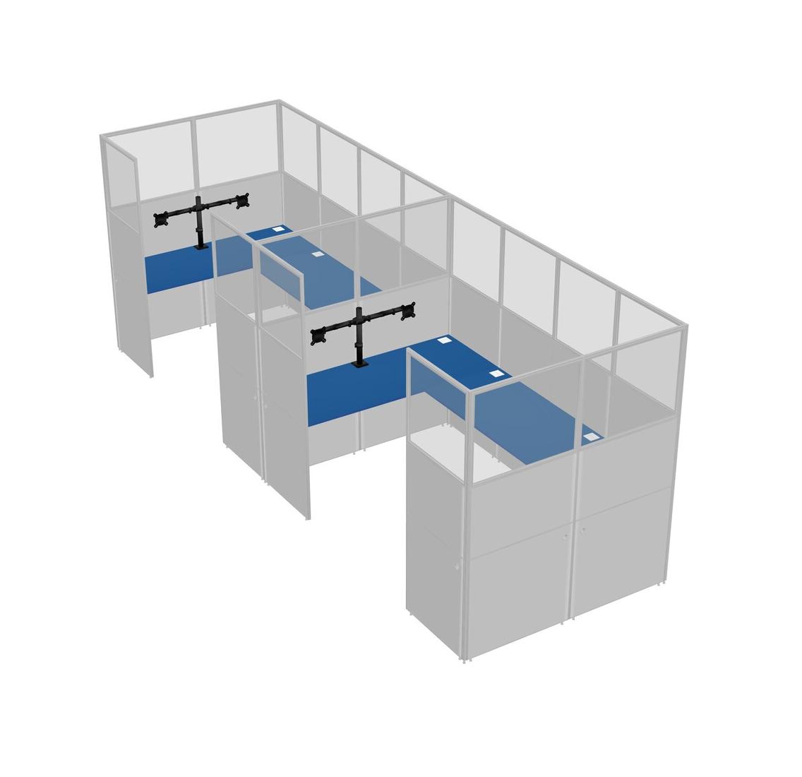 Prism Blue U-shaped Panel System For 2 Person + Monitor Arm (double Arms) For 2 User(s)