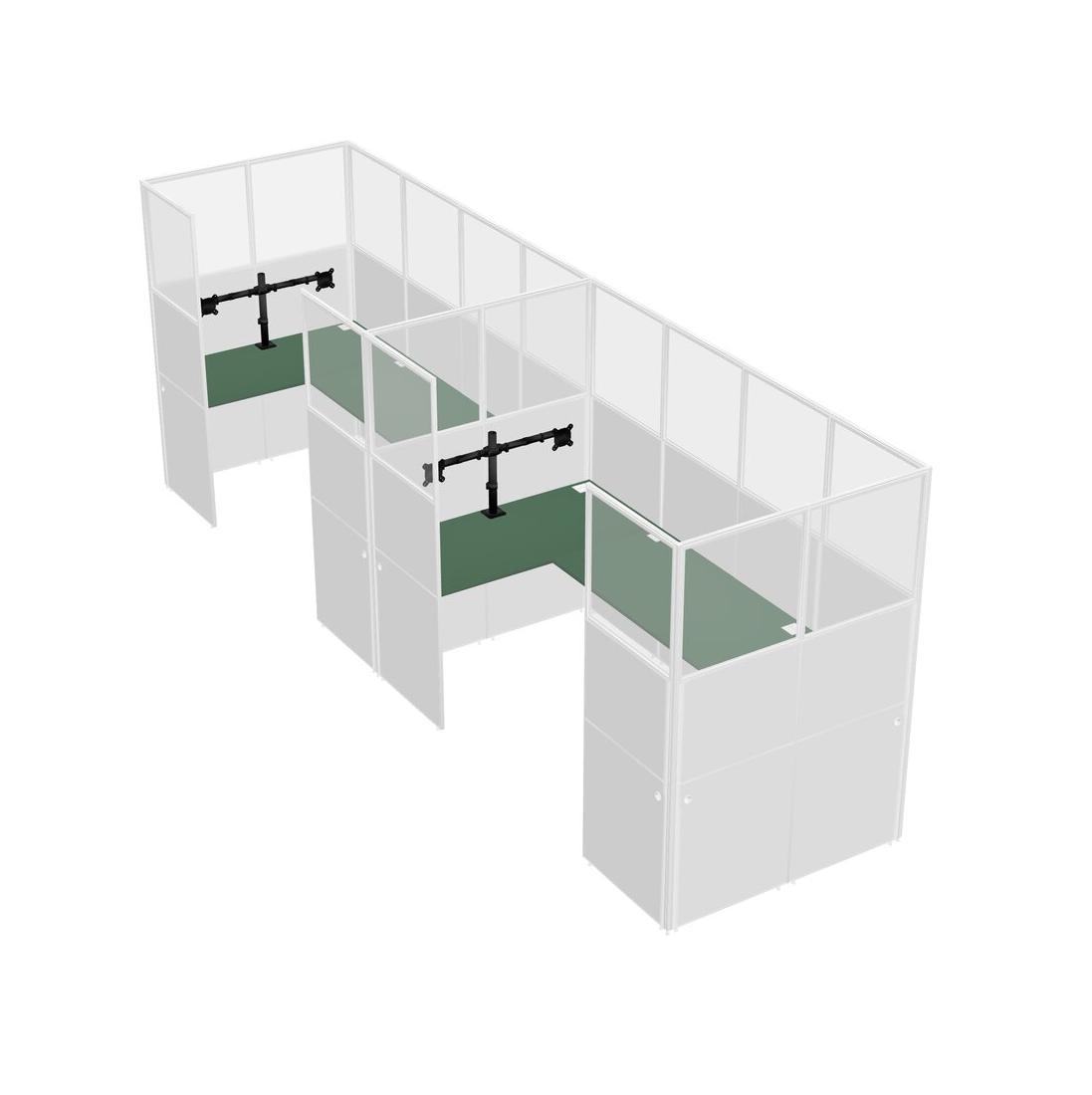 Green U-shaped Panel System For 2 Person + Monitor Arm (double Arms) For 2 User(s)