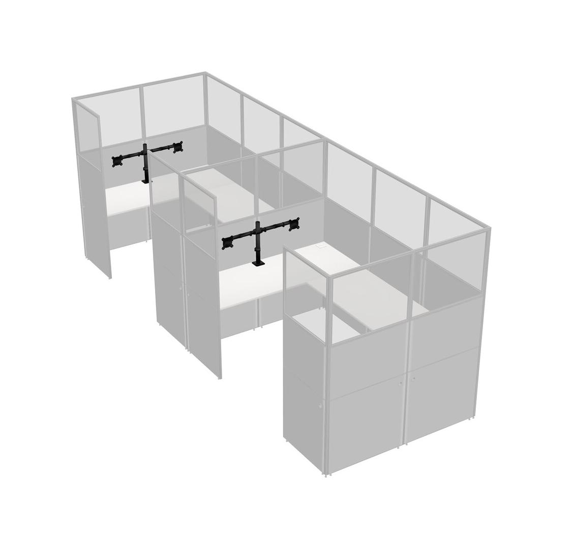 White U-shaped Panel System For 2 Person + Monitor Arm (double Arms) For 2 User(s)
