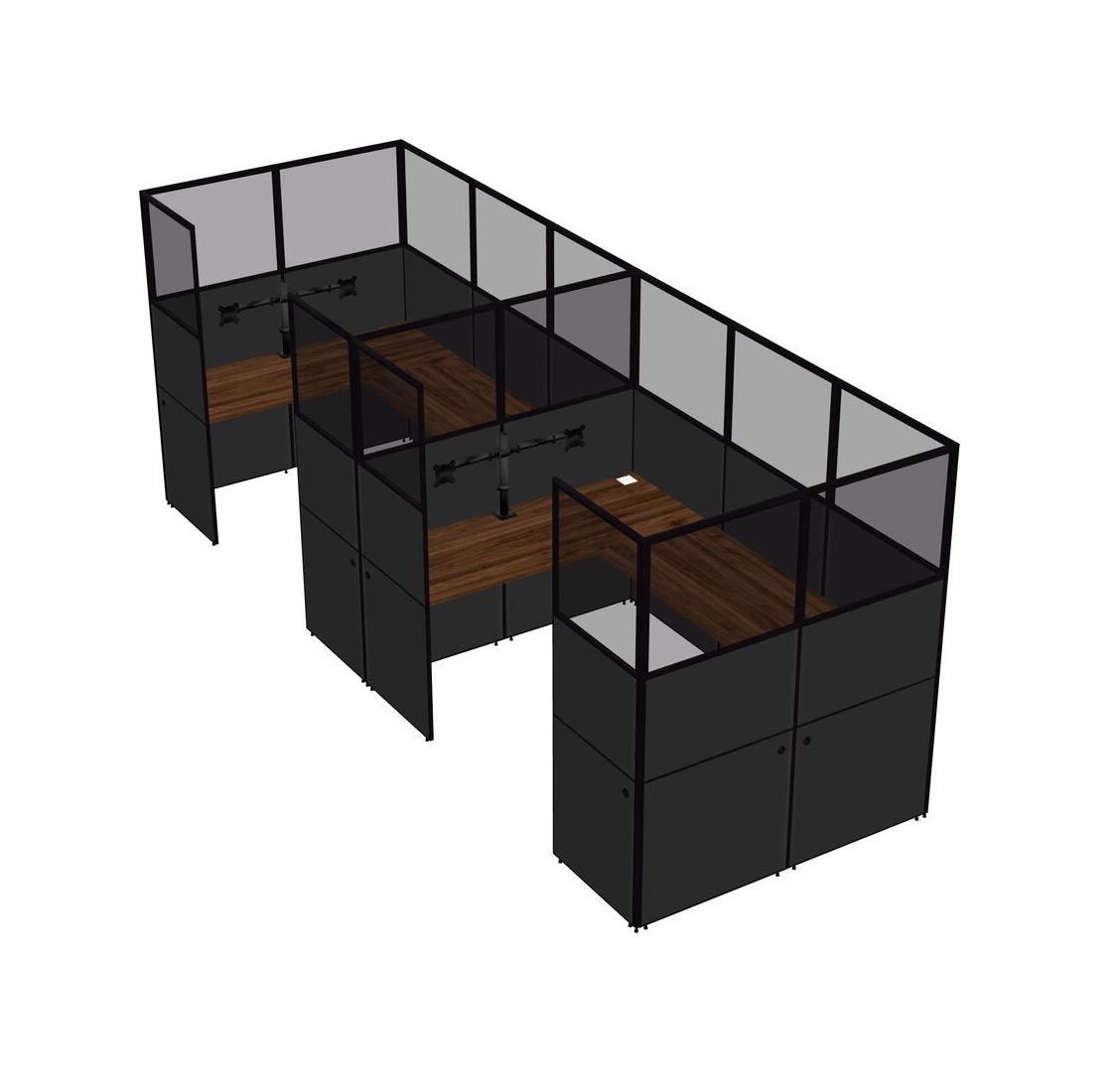 Columbia Walnut U-shaped Panel System For 2 Person + Monitor Arm (double Arms) For 2 User(s)
