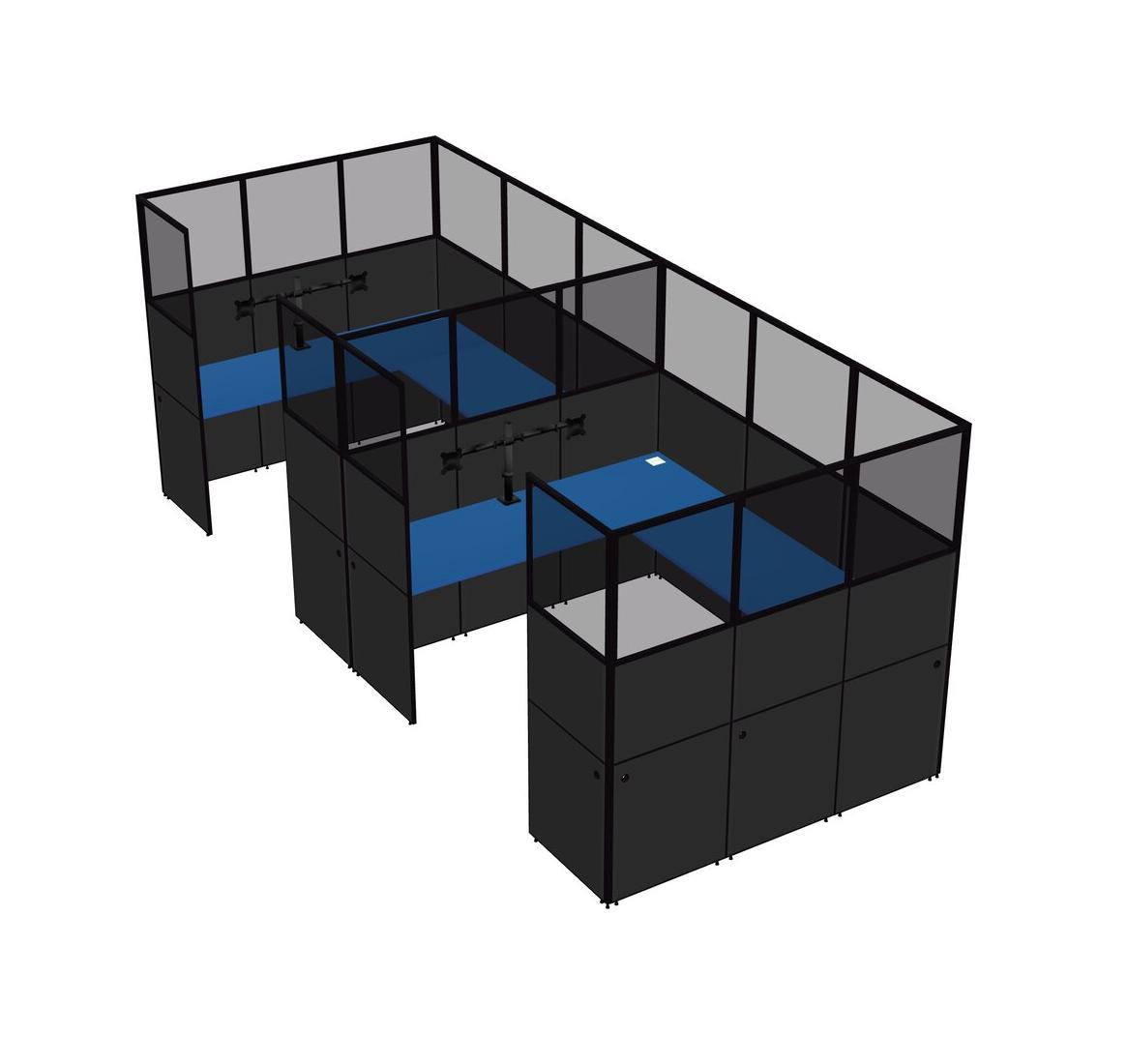 Prism Blue U-shaped Panel System For 2 Person + Monitor Arm (double Arms) For 2 User(s)