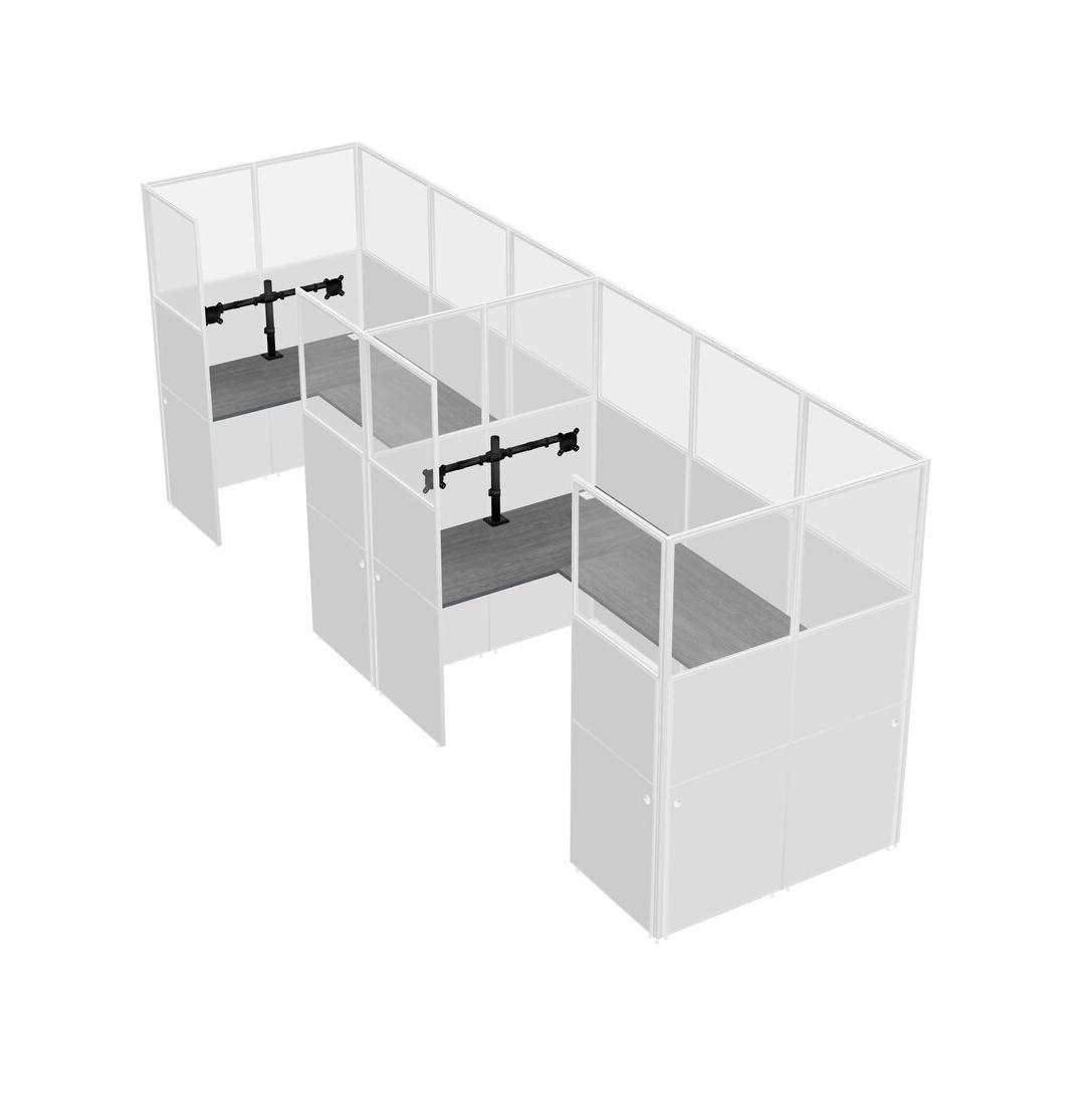 Grey U-shaped Panel System For 2 Person + Monitor Arm (double Arms) For 2 User(s)