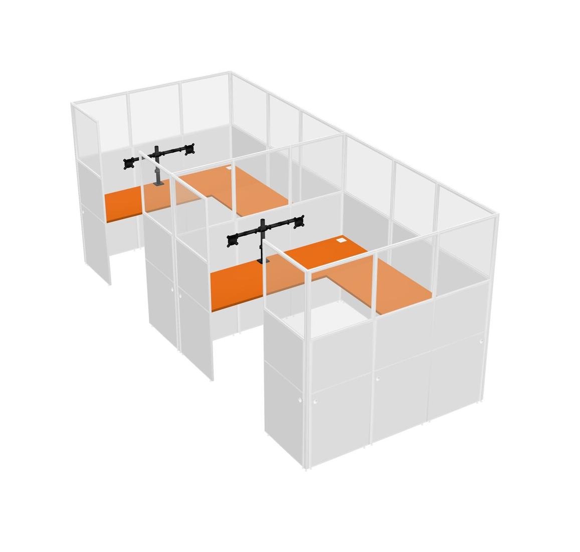 Orange U-shaped Panel System For 2 Person + Monitor Arm (double Arms) For 2 User(s)
