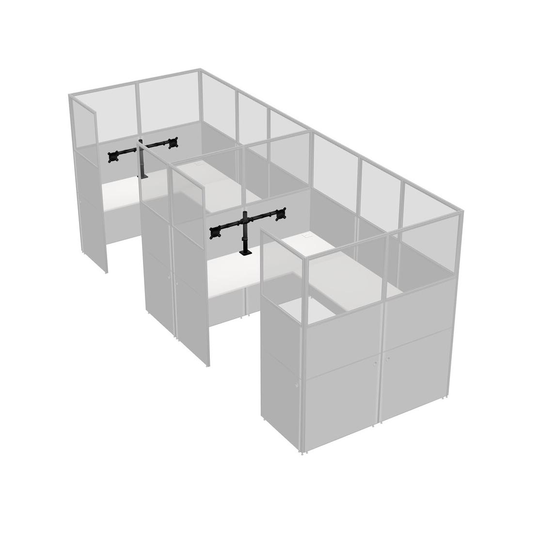 White U-shaped Panel System For 2 Person + Monitor Arm (double Arms) For 2 User(s)
