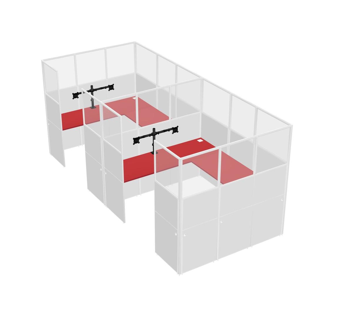 Prism Red U-shaped Panel System For 2 Person + Monitor Arm (double Arms) For 2 User(s)