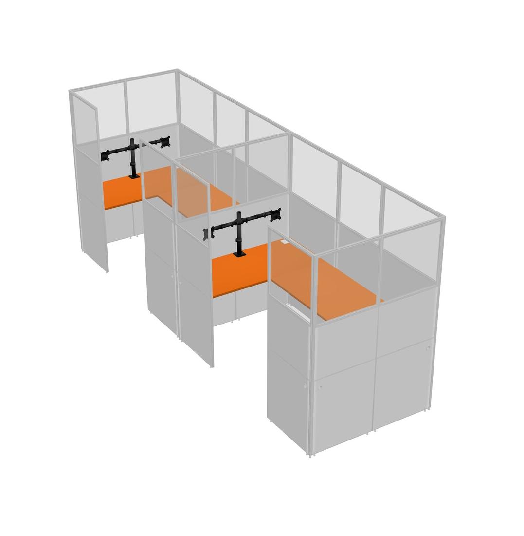 Orange U-shaped Panel System For 2 Person + Monitor Arm (double Arms) For 2 User(s)