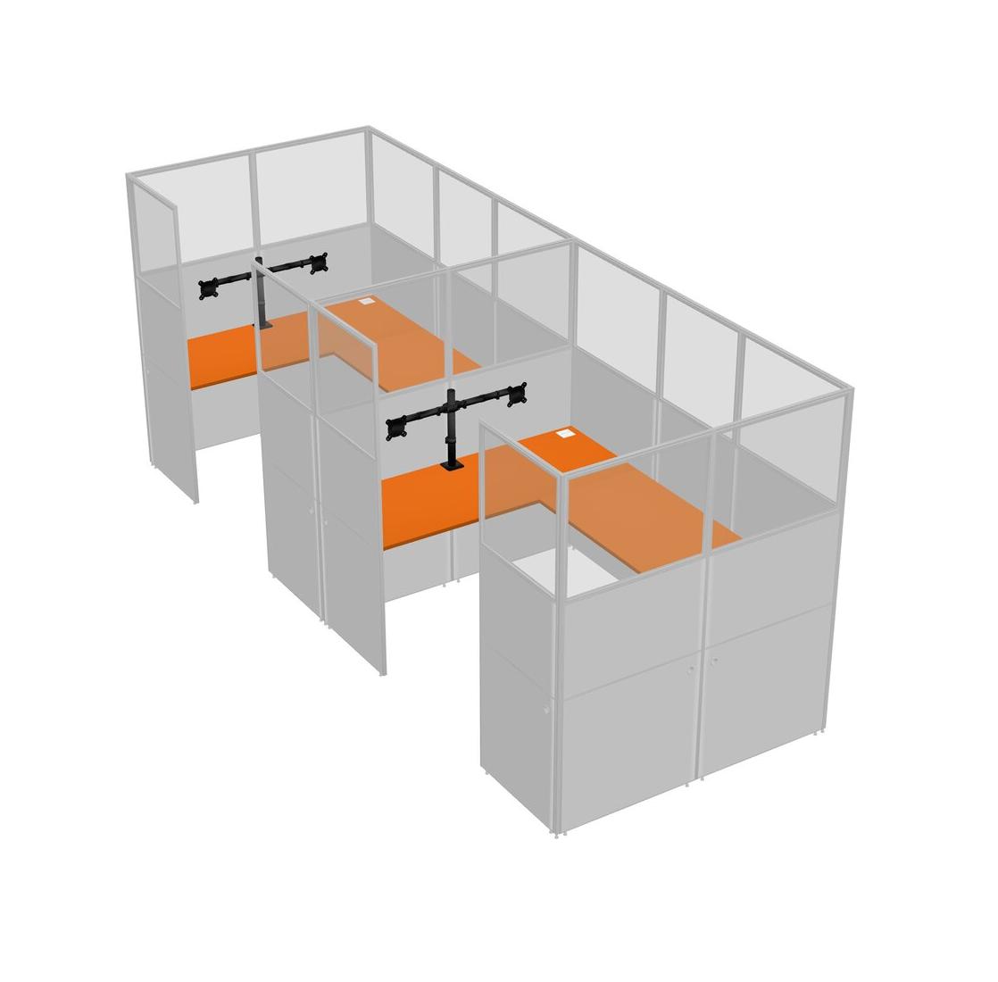 Orange U-shaped Panel System For 2 Person + Monitor Arm (double Arms) For 2 User(s)