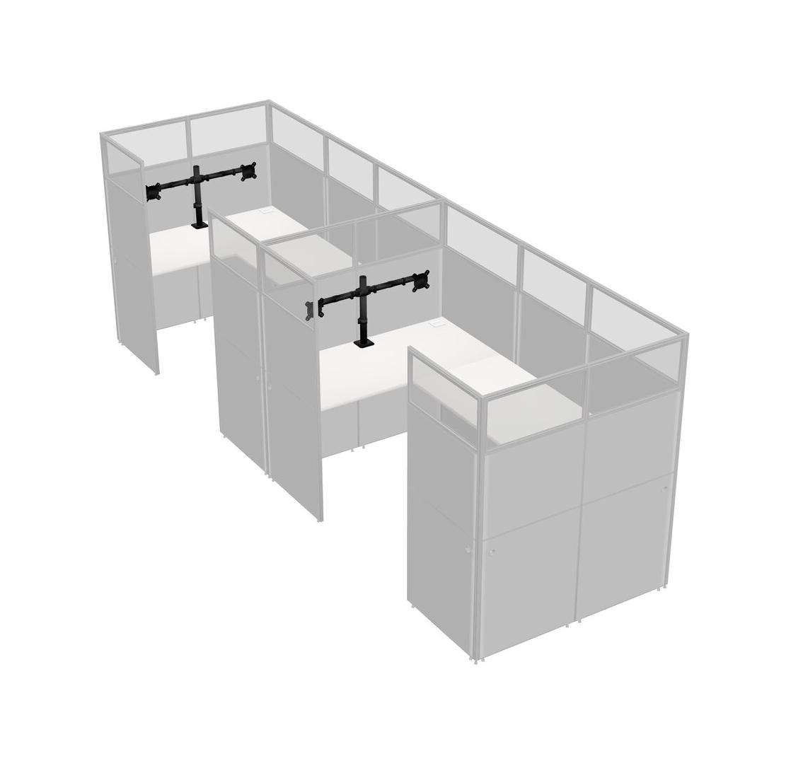 White U-shaped Panel System For 2 Person + Monitor Arm (double Arms) For 2 User(s)