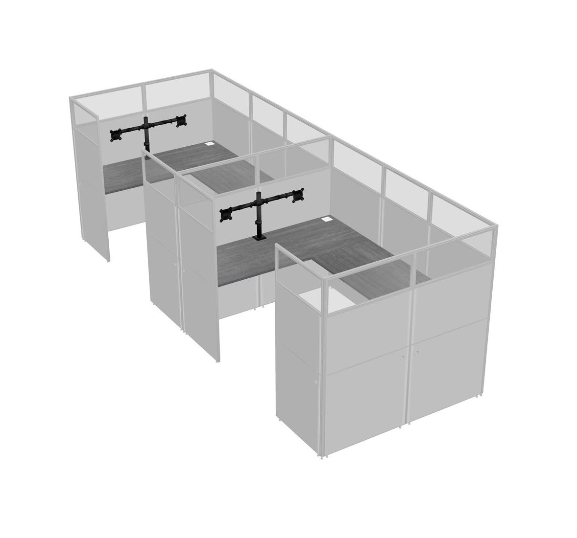 Grey U-shaped Panel System For 2 Person + Monitor Arm (double Arms) For 2 User(s)