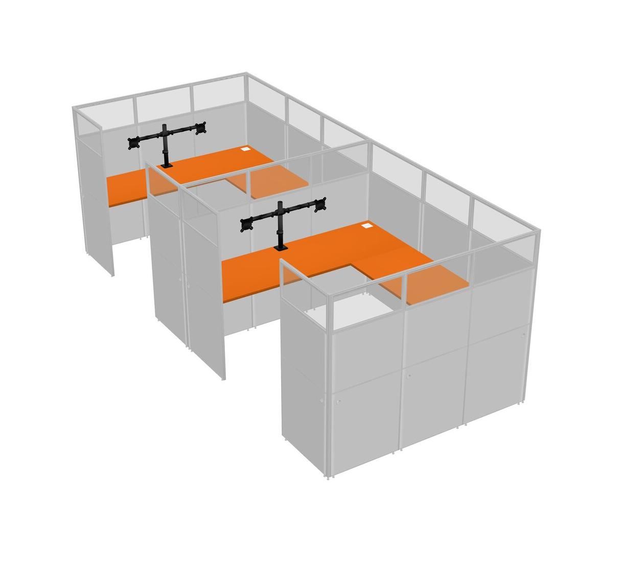 Orange U-shaped Panel System For 2 Person + Monitor Arm (double Arms) For 2 User(s)