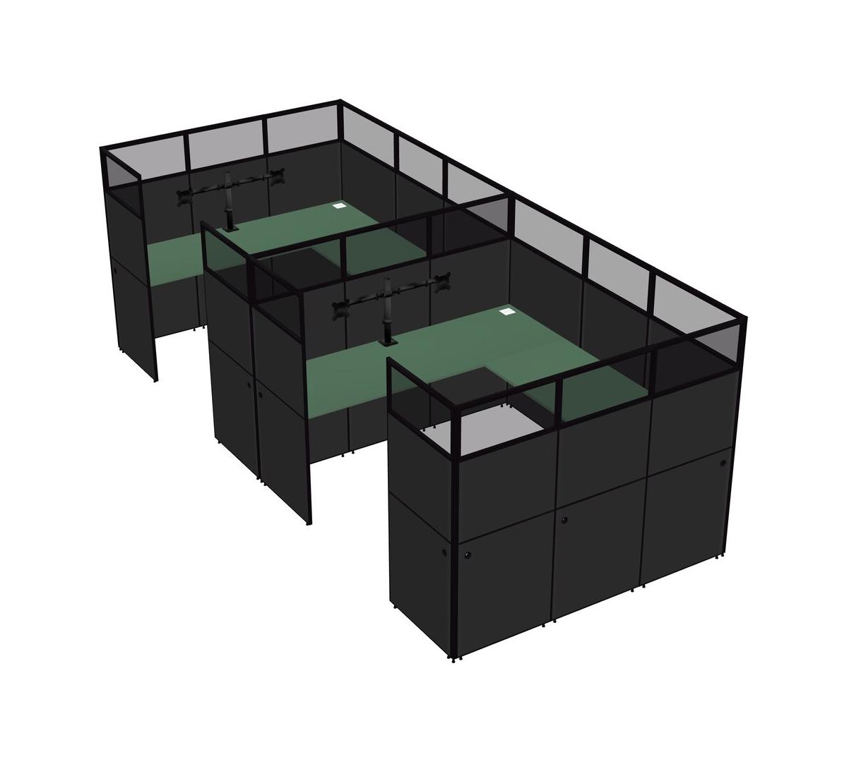 Green U-shaped Panel System For 2 Person + Monitor Arm (double Arms) For 2 User(s)