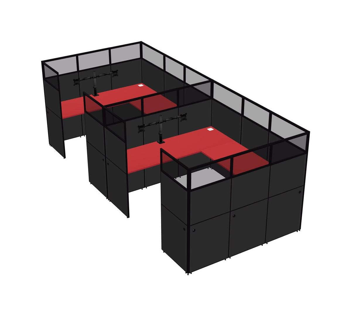 Prism Red U-shaped Panel System For 2 Person + Monitor Arm (double Arms) For 2 User(s)