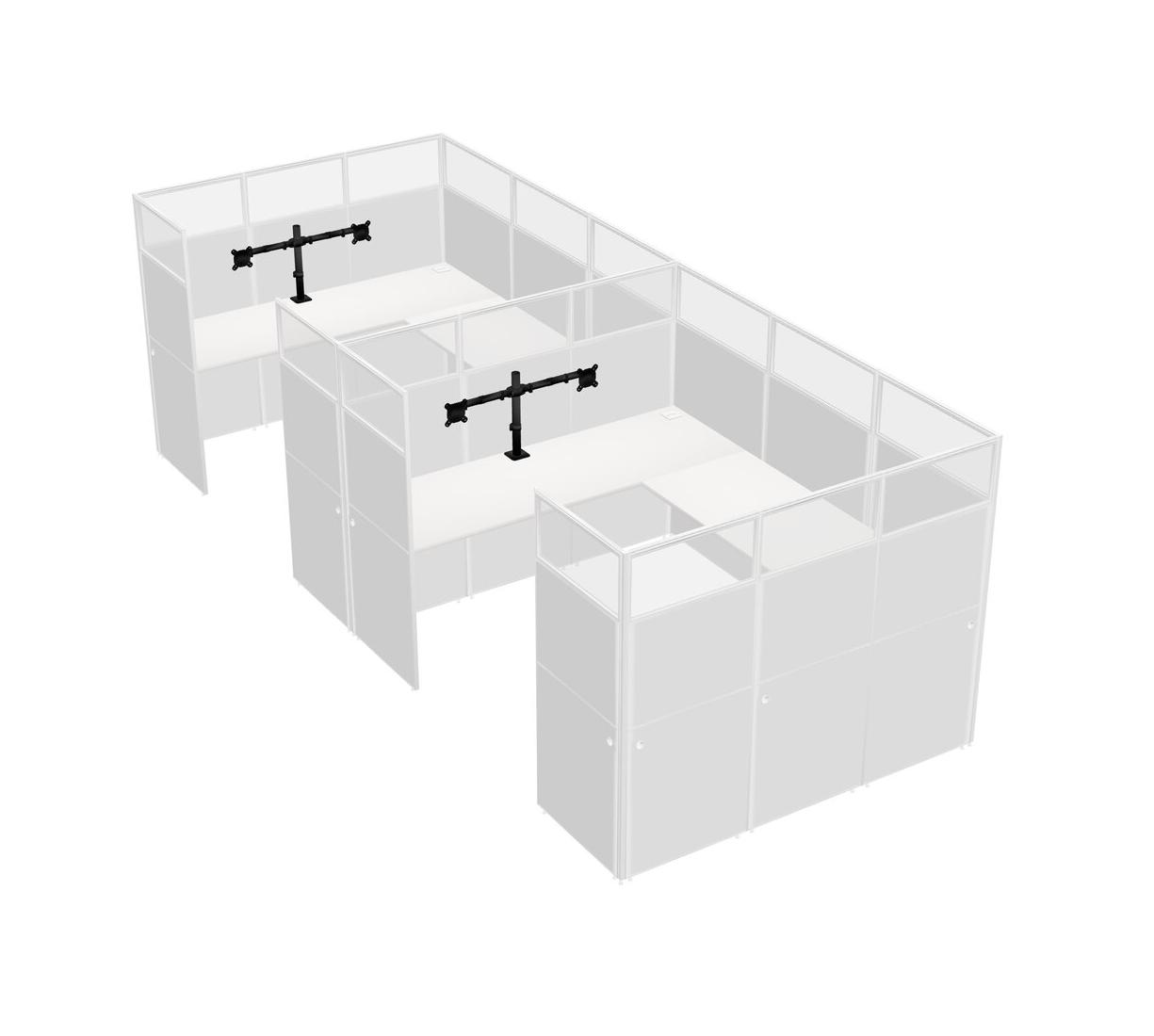 White U-shaped Panel System For 2 Person + Monitor Arm (double Arms) For 2 User(s)