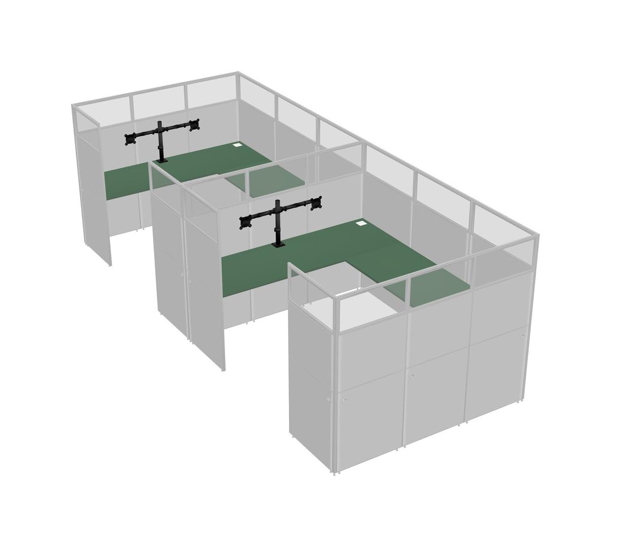 Green U-shaped Panel System For 2 Person + Monitor Arm (double Arms) For 2 User(s)