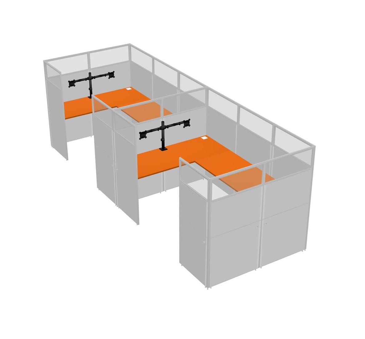 Orange U-shaped Panel System For 2 Person + Monitor Arm (double Arms) For 2 User(s)
