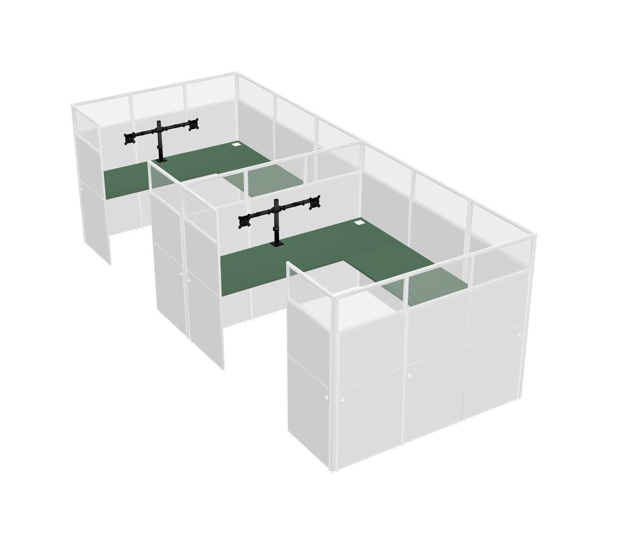 Green U-shaped Panel System For 2 Person + Monitor Arm (double Arms) For 2 User(s)