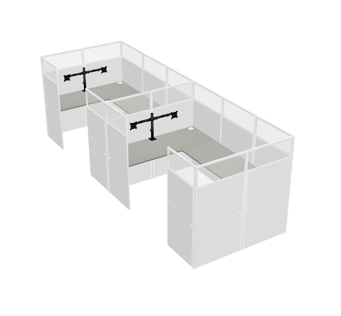 Grey Shadows U-shaped Panel System For 2 Person + Monitor Arm (double Arms) For 2 User(s)