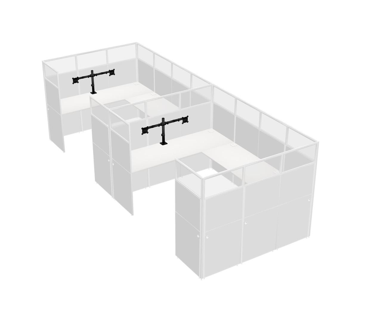 White U-shaped Panel System For 2 Person + Monitor Arm (double Arms) For 2 User(s)