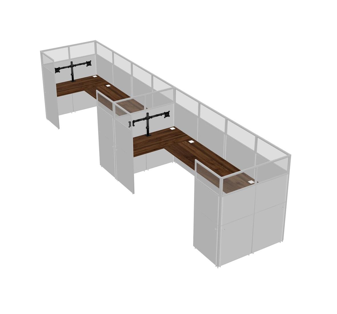 Columbia Walnut U-shaped Panel System For 2 Person + Monitor Arm (double Arms) For 2 User(s)