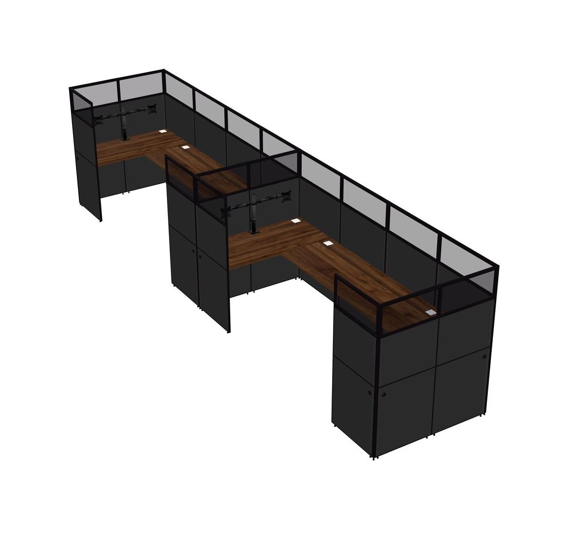 Columbia Walnut U-shaped Panel System For 2 Person + Monitor Arm (double Arms) For 2 User(s)