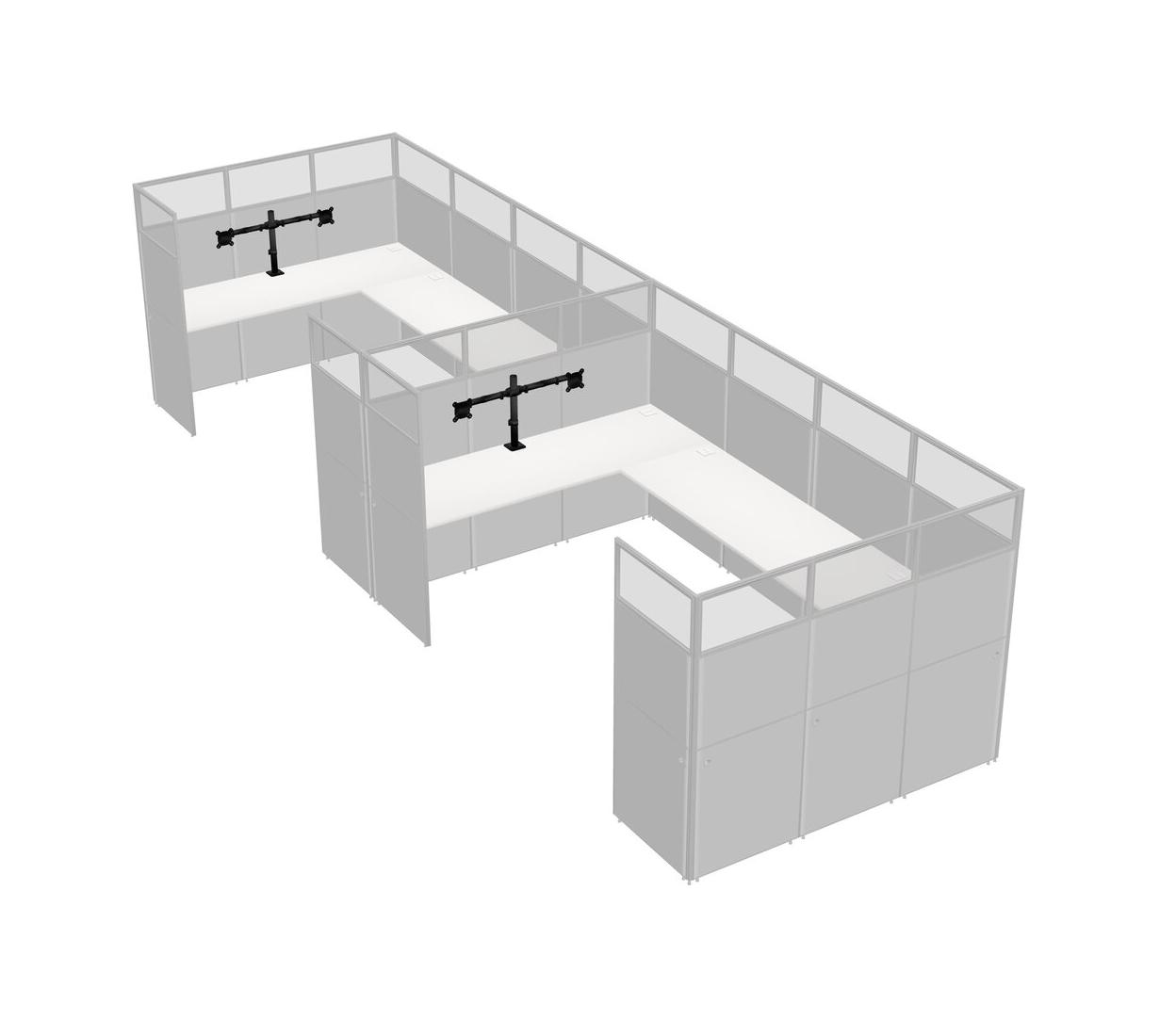 White U-shaped Panel System For 2 Person + Monitor Arm (double Arms) For 2 User(s)