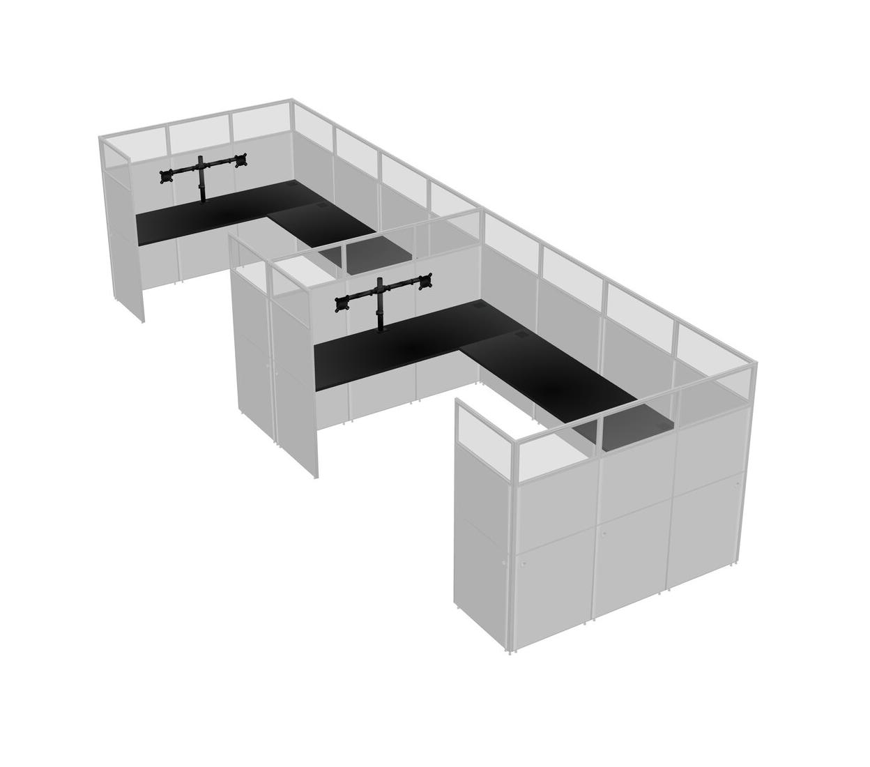 Black U-shaped Panel System For 2 Person + Monitor Arm (double Arms) For 2 User(s)