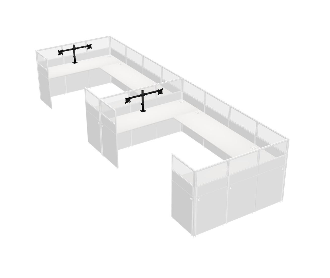 White U-shaped Panel System For 2 Person + Monitor Arm (double Arms) For 2 User(s)