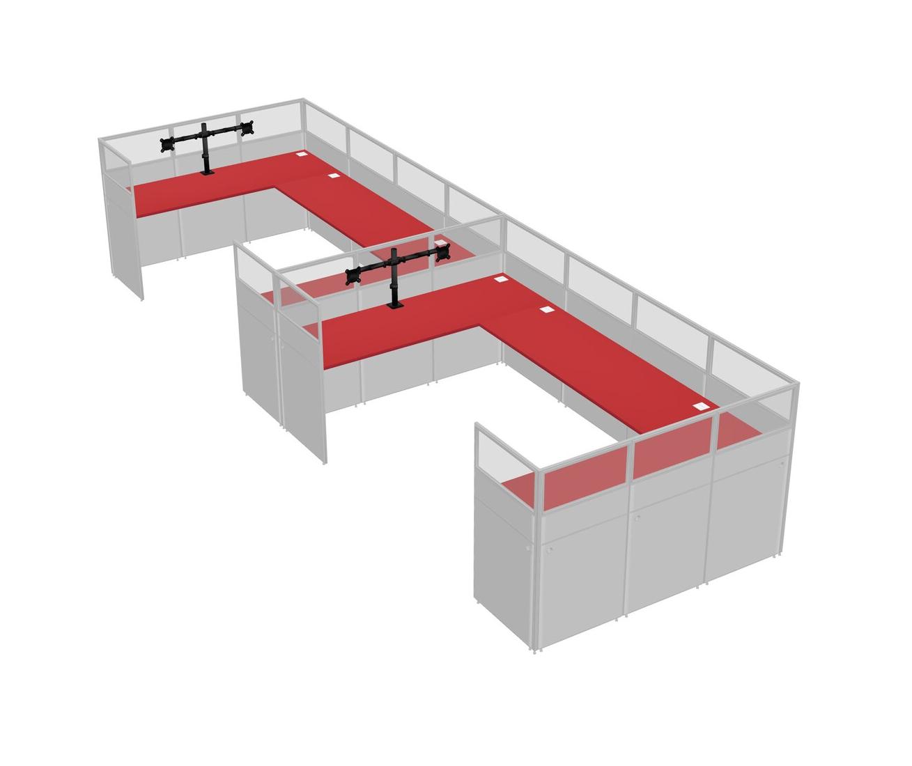 Prism Red U-shaped Panel System For 2 Person + Monitor Arm (double Arms) For 2 User(s)