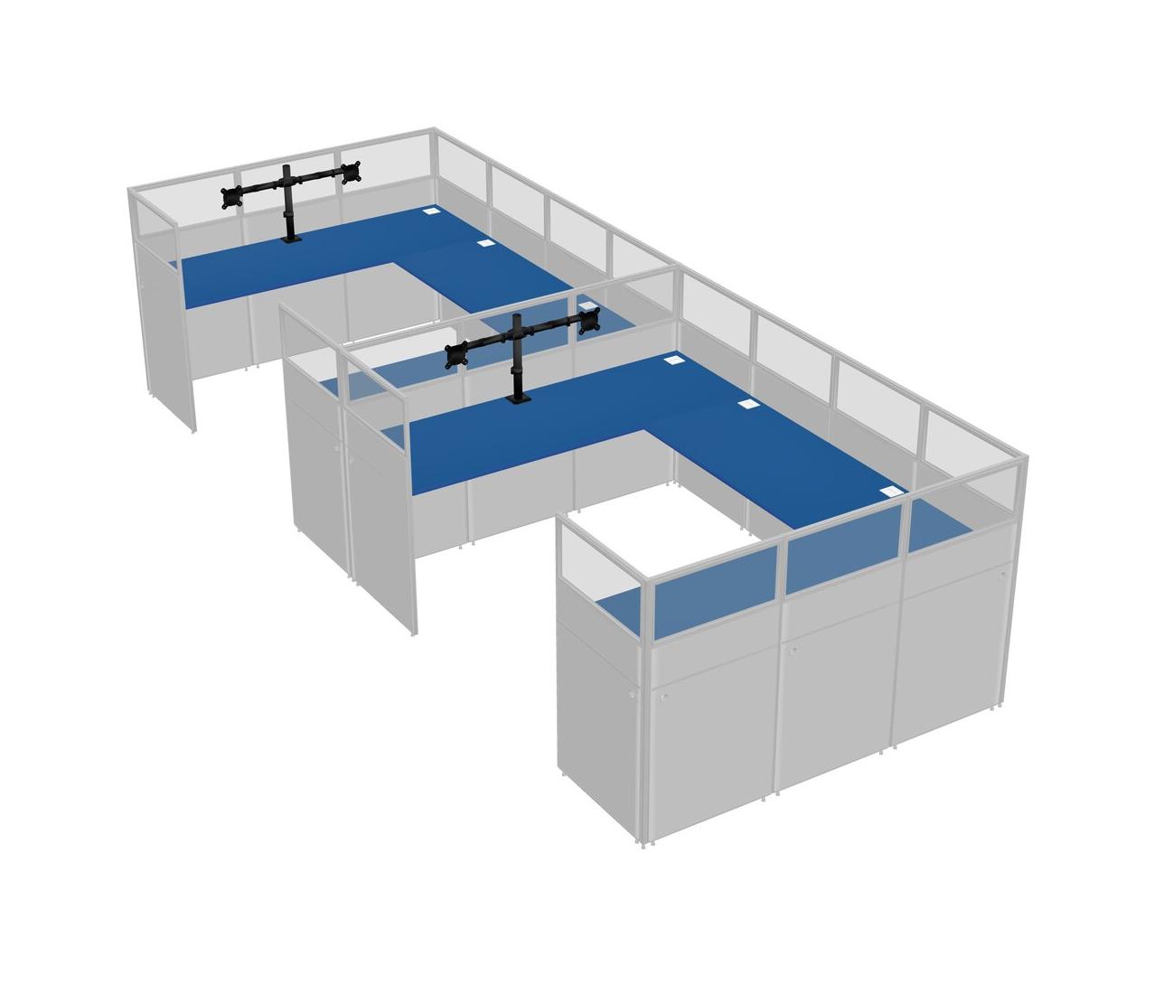 Prism Blue U-shaped Panel System For 2 Person + Monitor Arm (double Arms) For 2 User(s)